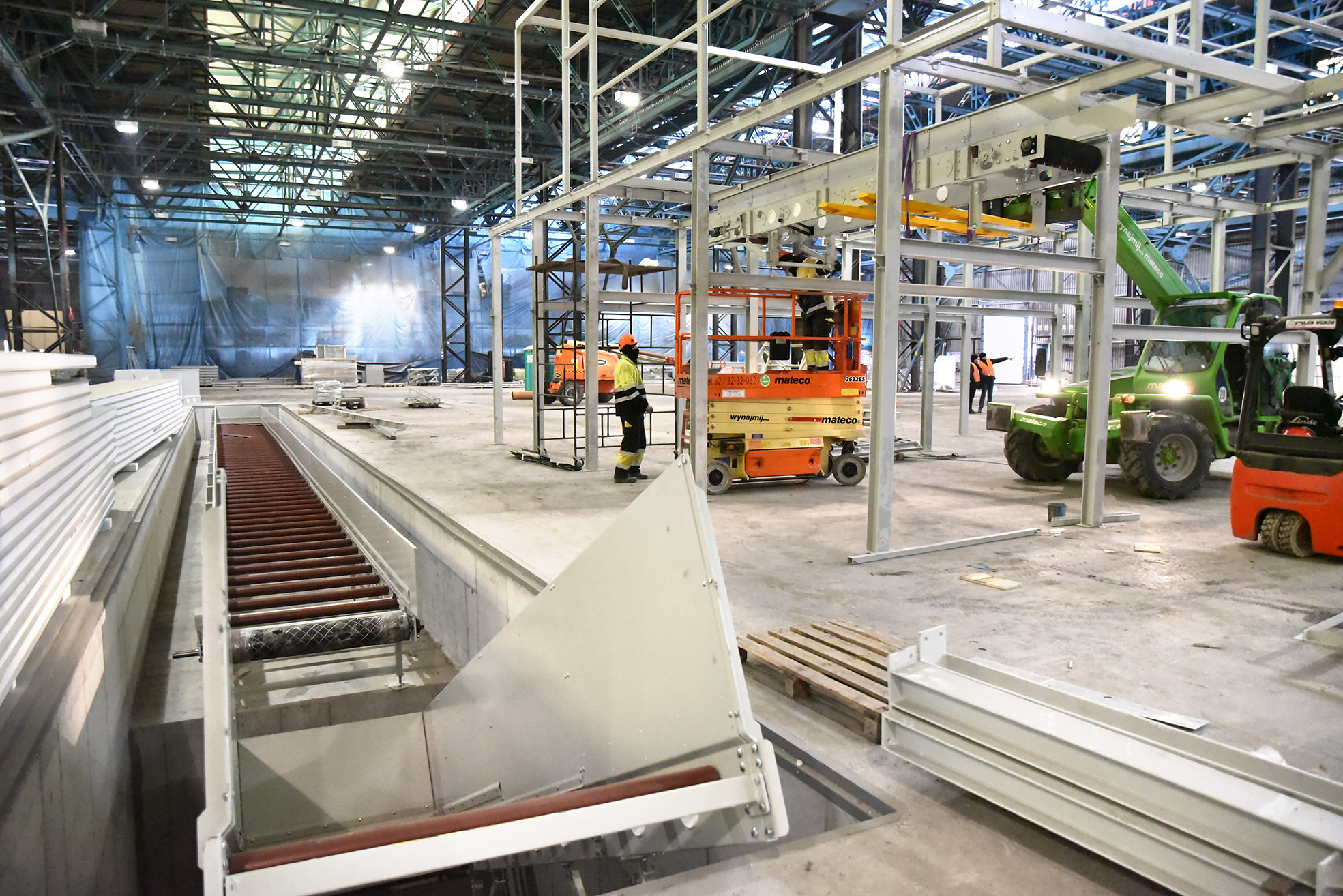 „Wykonane zostały kanały technologiczne pod przenośniki, w trakcie montażu są podbudowy kabin sortowniczych.” – mówi Grzegorz Czop, członek zarządu Ekopak – „Firma Wende Recyclingtech dostarczyła separatory optyczne marki Pellenc, firma Sigma dostarczyła część przenośników kanałowych, bunkrowych oraz konstrukcje wsporcze. Ponadto na teren montażu dojechała stacja kompresorów, która czeka na montaż w kontenerze tech nicznym. Dla zasilenia instalacji konieczne było wykonanie stacji transformatorowej średniego napięcia wraz z doprowadzeniem zasilania we wskazane przez dostawcę technologii punkty. Te prace mamy już za sobą.