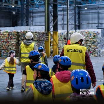 Podczas wizyty przedszkolaki uczestniczące w projekcie „Przedsiębiorcze Dzieciaki 2026”, zwiedziły zakład oraz poznały, jak wygląda jego codzienne funkcjonowanie. Dowiedziały się, jak ważna jest segregacja odpadów oraz jak każdy z nas może przyczynić się do ochrony środowiska.