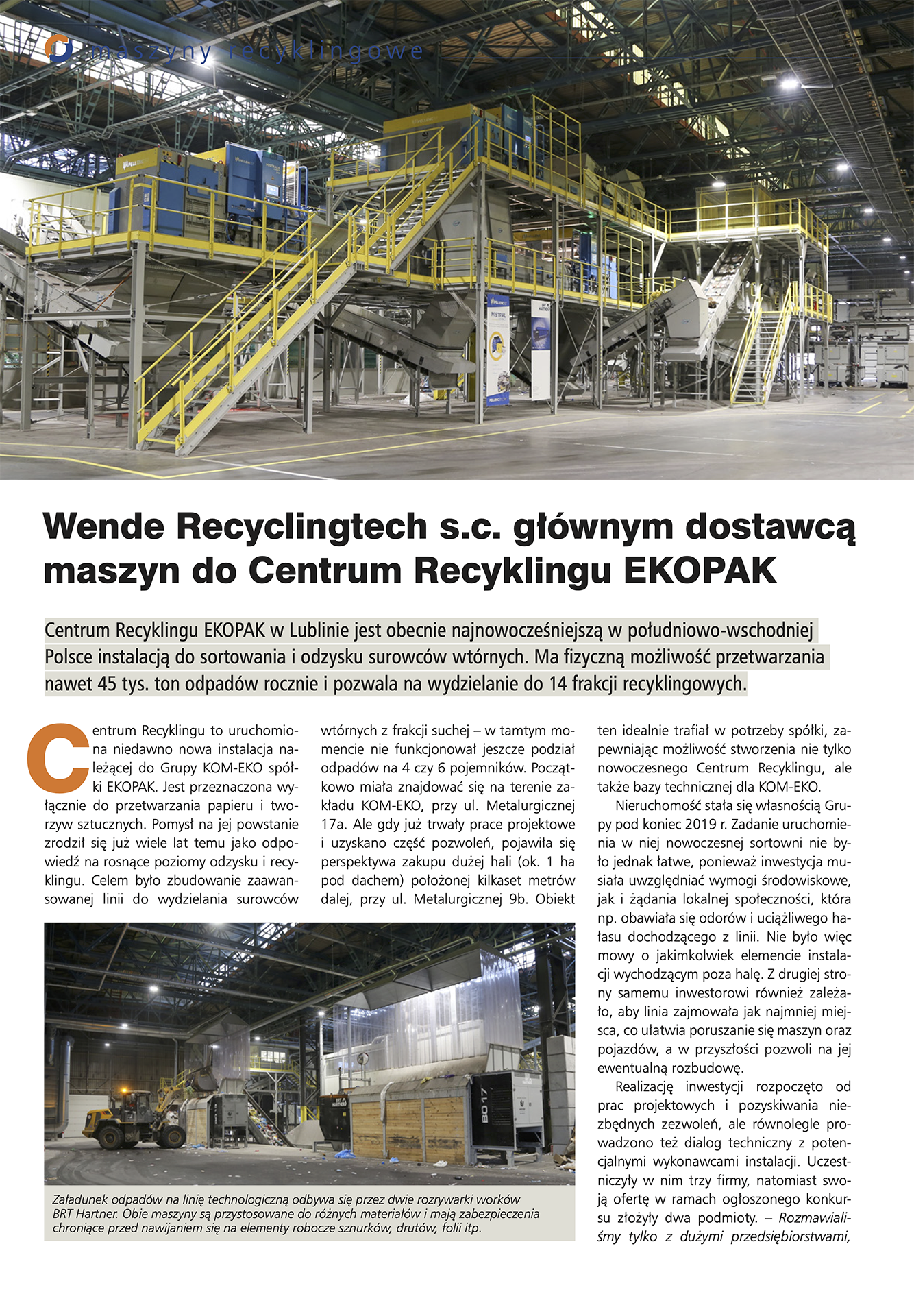 Wende Recyclingtech s.c. głównym dostawcą maszyn do Centrum Recyklingu EKOPAK